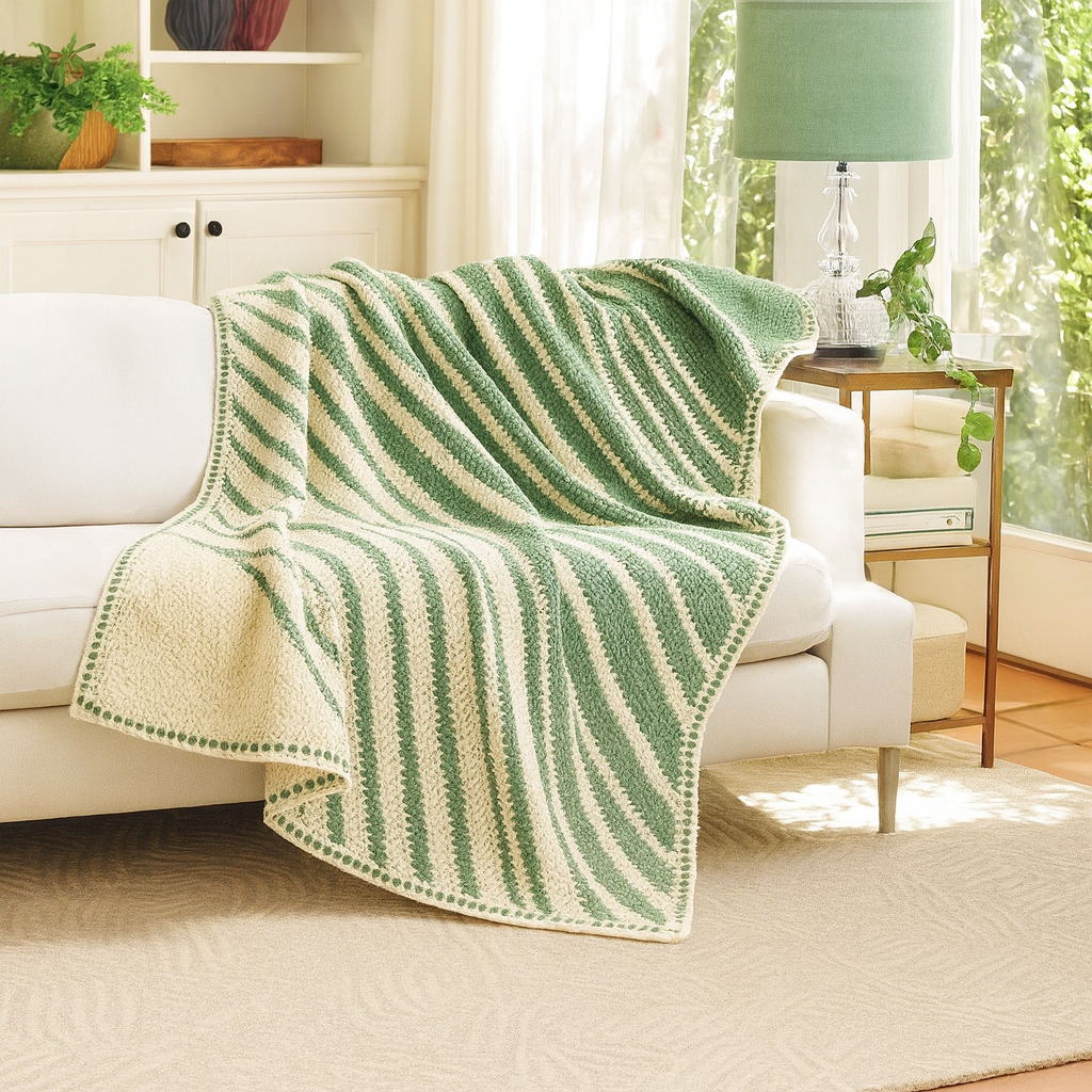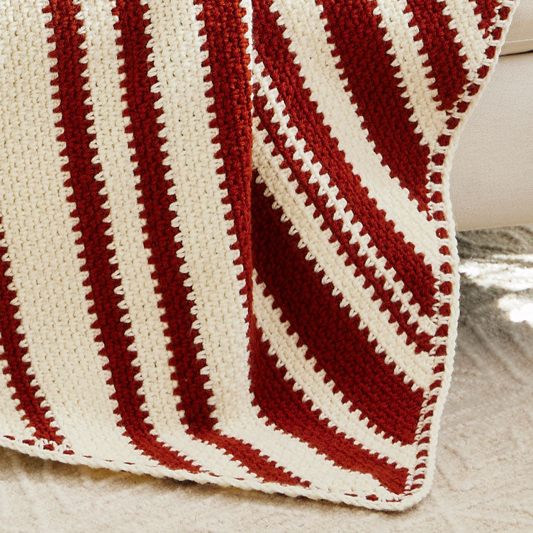 High contrast colors gives this simple corner to corner blanket an instant modern look. Kit includes worsted weight yarns. Requires crochet hook H-8 (5 mm). Size 51" x 64". Easy crochet.
