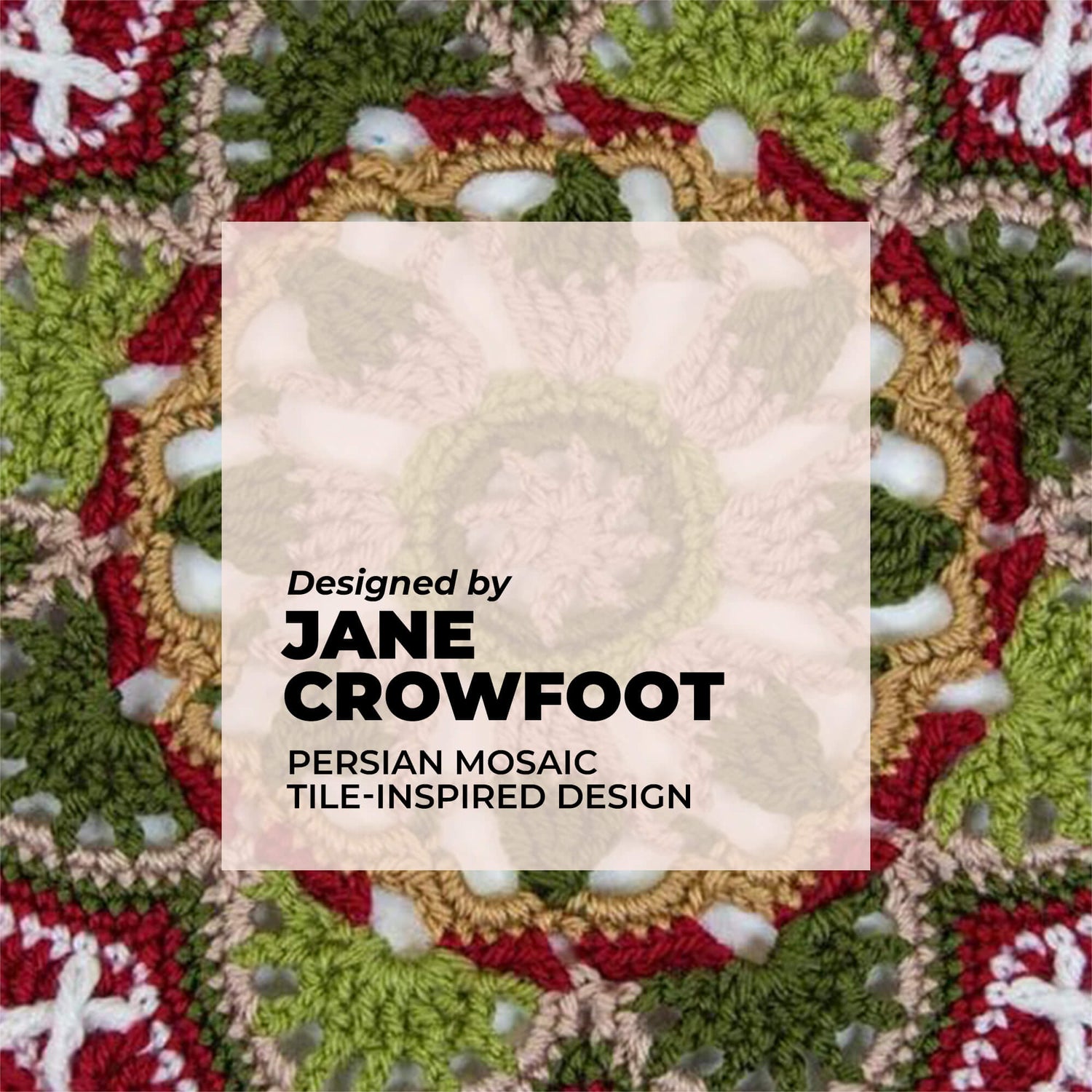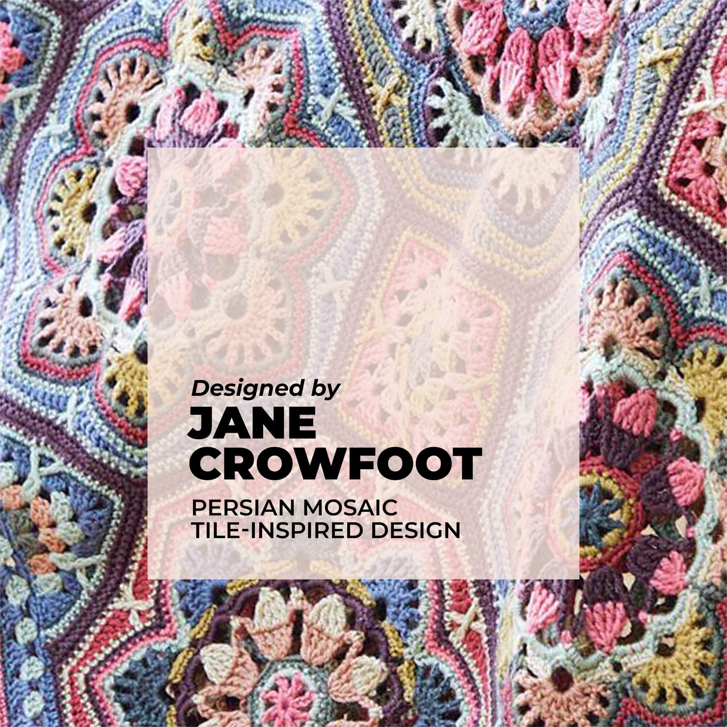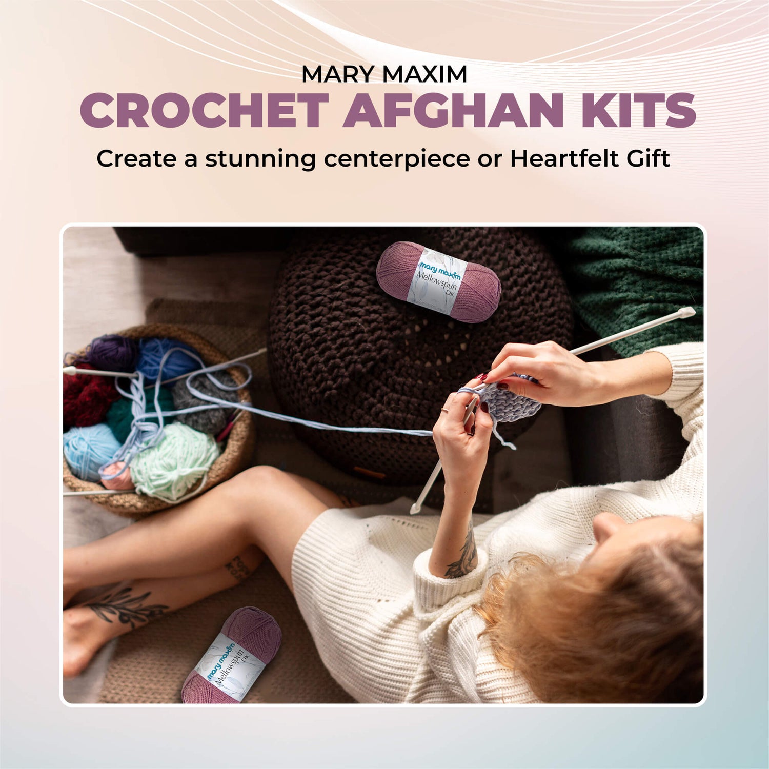 A new version of Jane Crowfoot's stunning Persian Tiles design. This crocheted afghan is formed by joining motifs for the look of beautiful mosaic tiles. Kit includes Mary Maxim Mellowspun DK yarn and instructions. Requires crochet hooks sizes E-4, G-6 and size 7. Finished size 46.5" x 46.5". Intermediate Crochet.