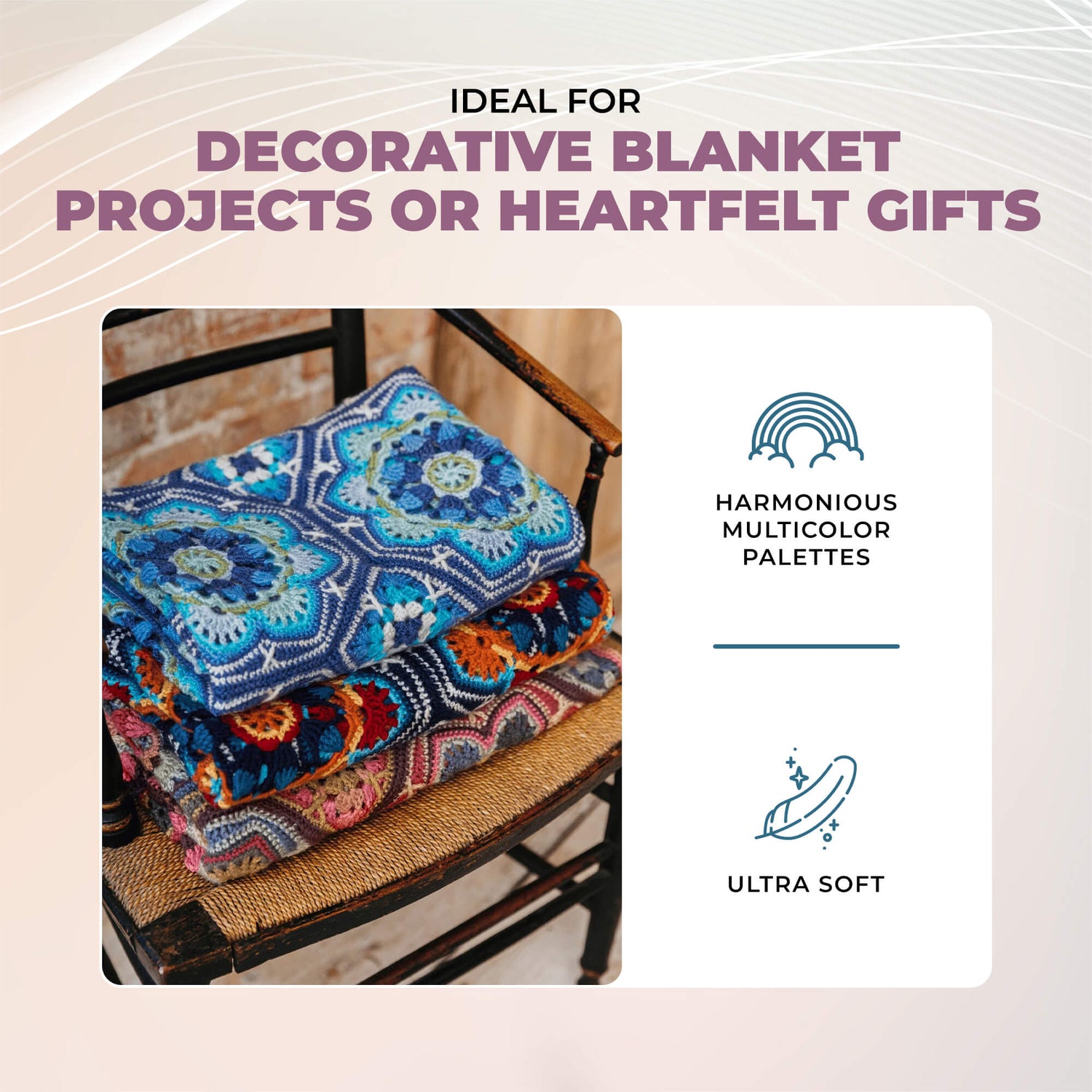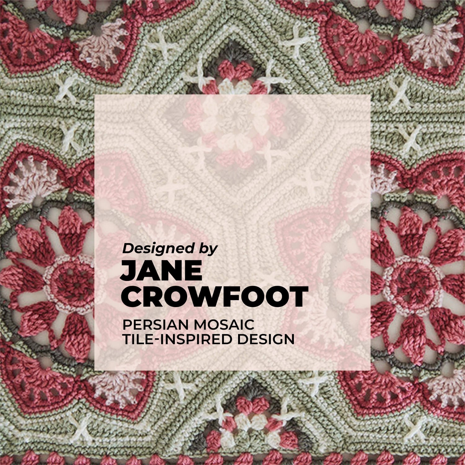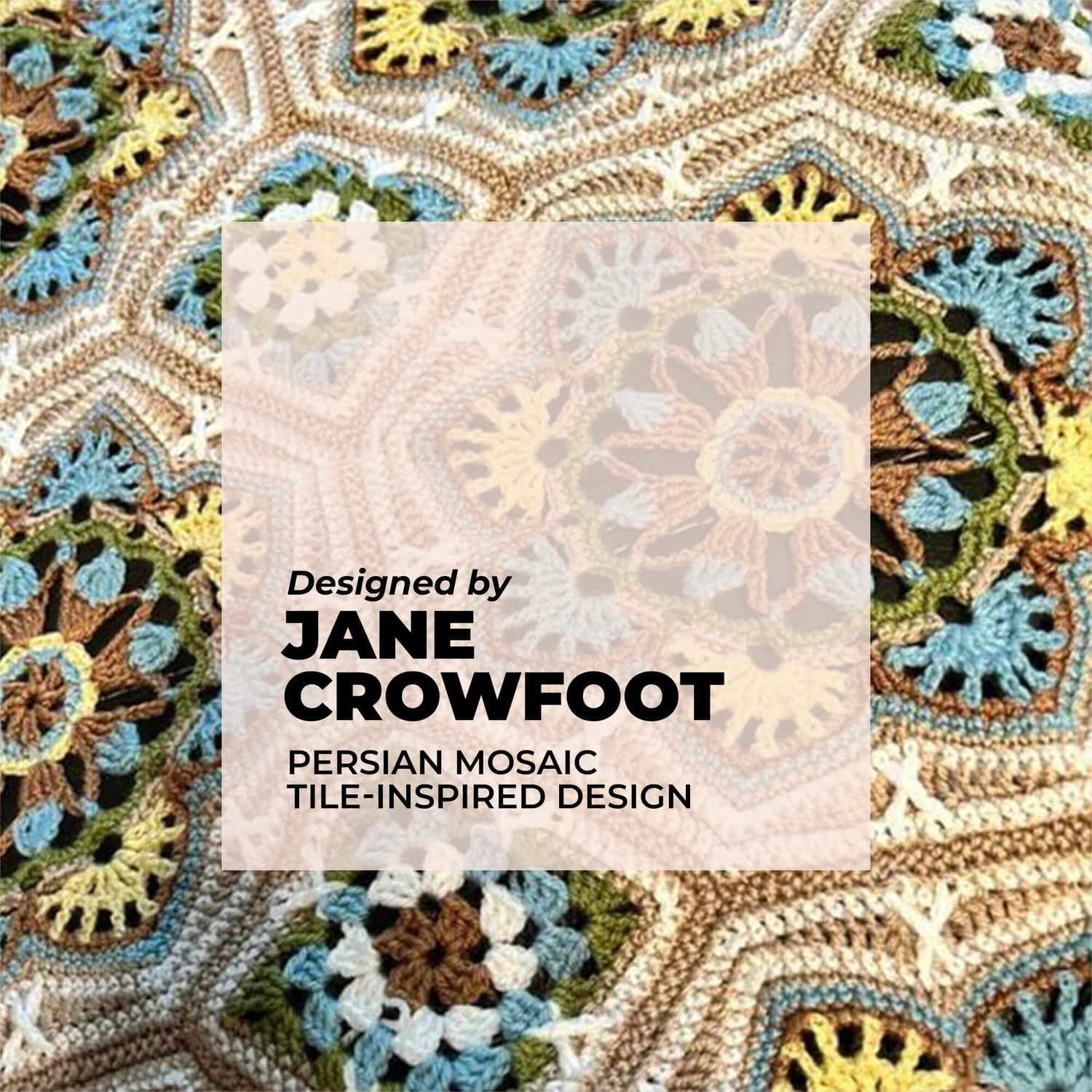 A new version of Jane Crowfoot's stunning Persian Tiles design. This crocheted afghan is formed by joining motifs for the look of beautiful mosaic tiles. Kit includes Mary Maxim Mellowspun DK yarn and instructions. Requires crochet hooks sizes E-4, G-6 and size 7. Finished size 46.5" x 46.5". Intermediate Crochet.